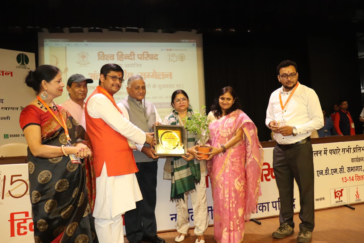14 सितम्बर 2019 विश्व हिंदी परिषद द्वारा श्री वी. के सिंह के हाथों