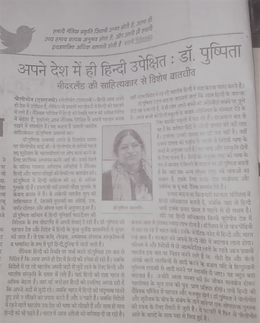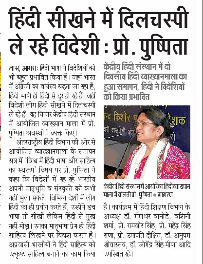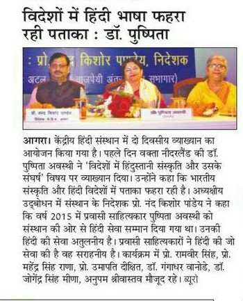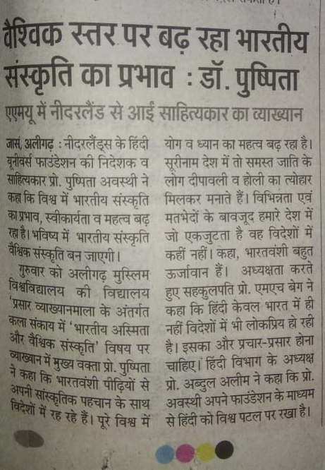 प्रवासी हिंदी और भारतीय संस्कृति की विदेशों में स्थिति पर भारत में पुष्पिता जी के विभिन्न व्याख्यानों का आयोजन - अम्स्टेल गंगा समाचार ब्यूरो